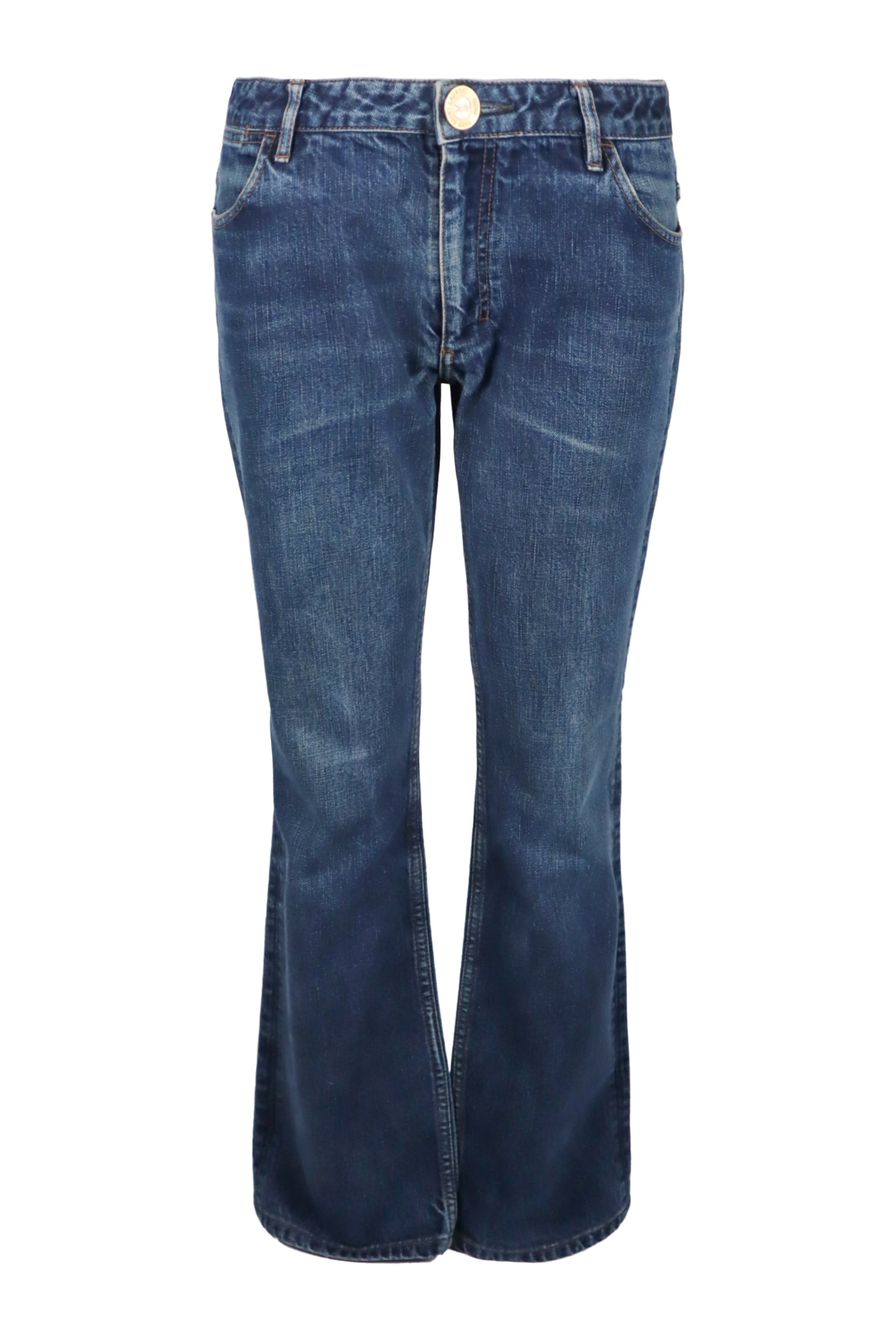 Saint Laurent Men's Bootcut Low-Waisted Jeans with Back Pocket YSL Detail