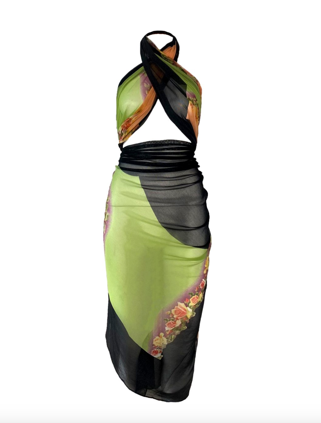 Original Vintage Jean Paul-Gaultier SS 99 floral mesh parero. Can be worn multiple ways. Rare and hard to find. Gaultier authenticity label stitched to inner.