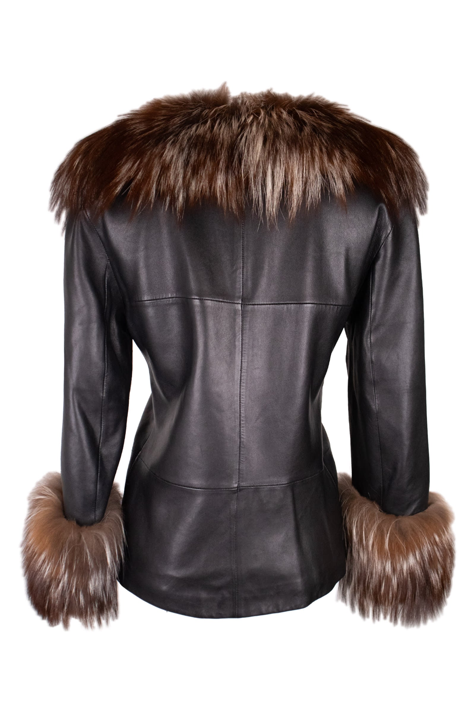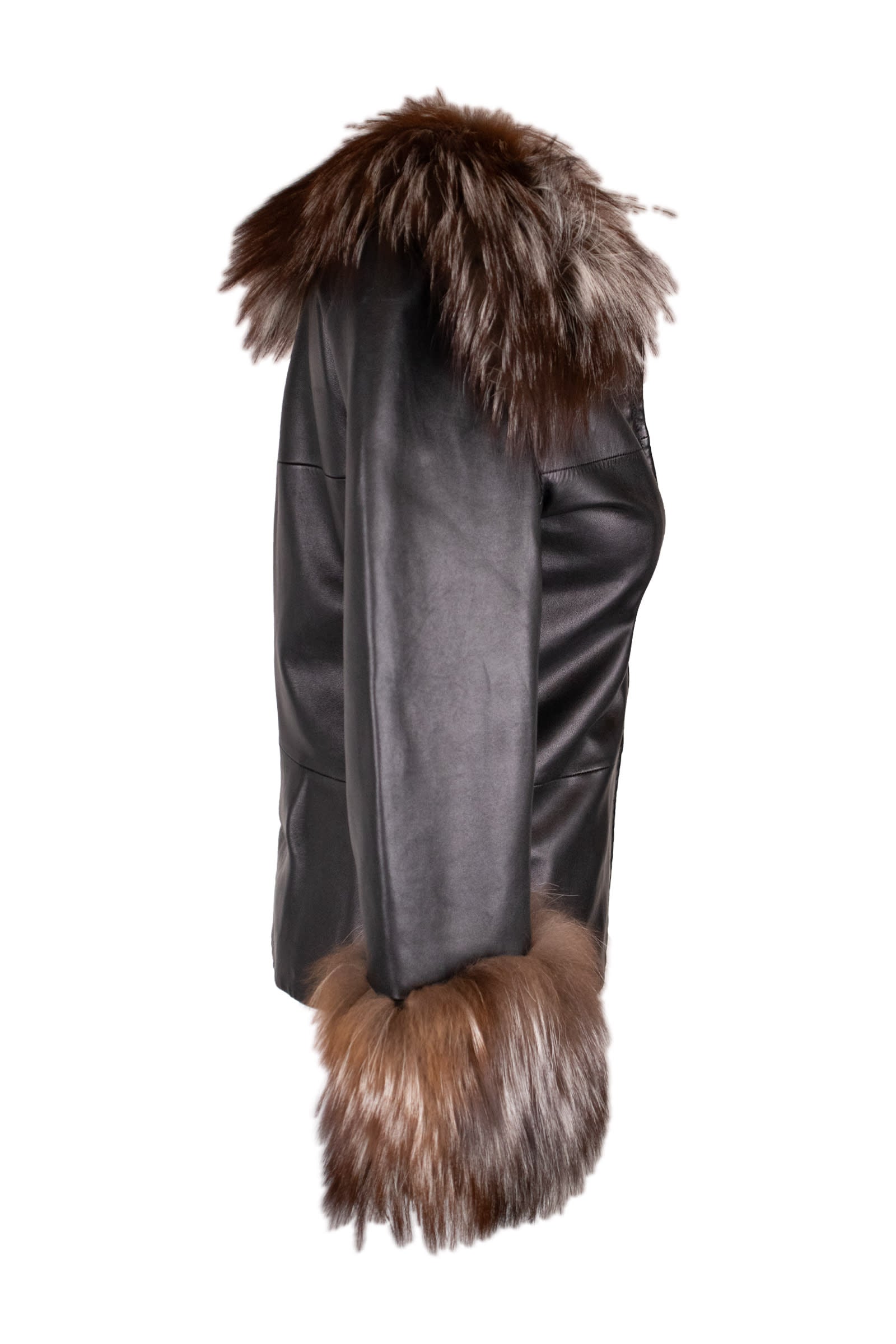 This jacket features a regular fit with a standard length and a structured silhouette. Crafted from leather with fur detailing at the collar and cuffs, it offers warmth and a refined finish with front zipper. The contrast between the black leather and brown fur adds a classic and elegant character to the design.